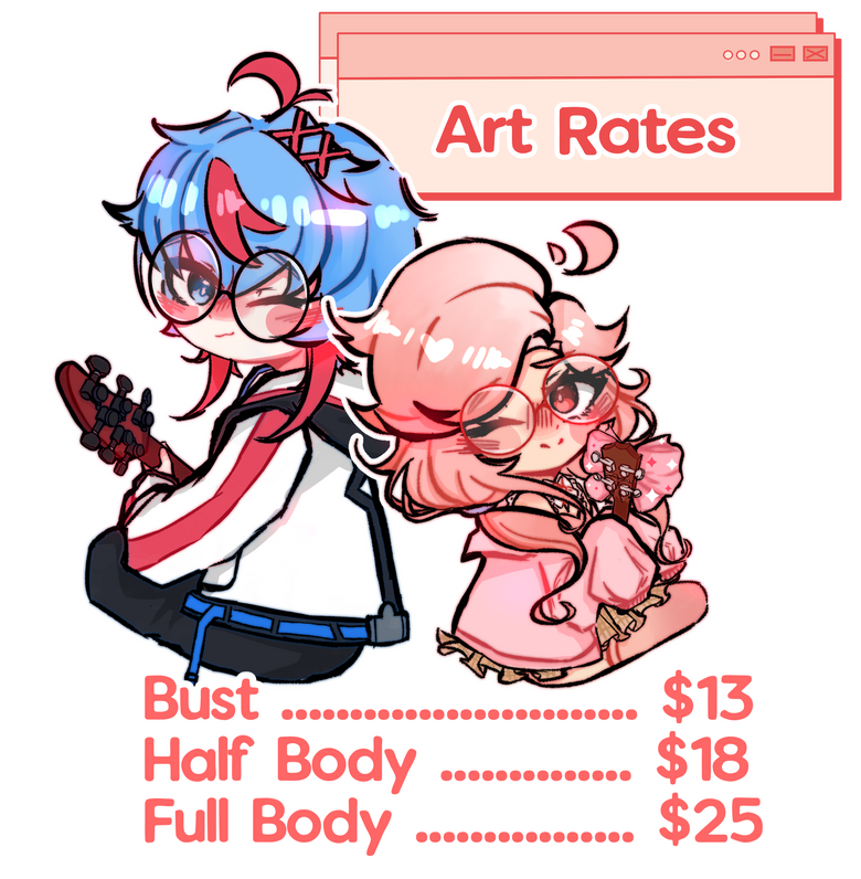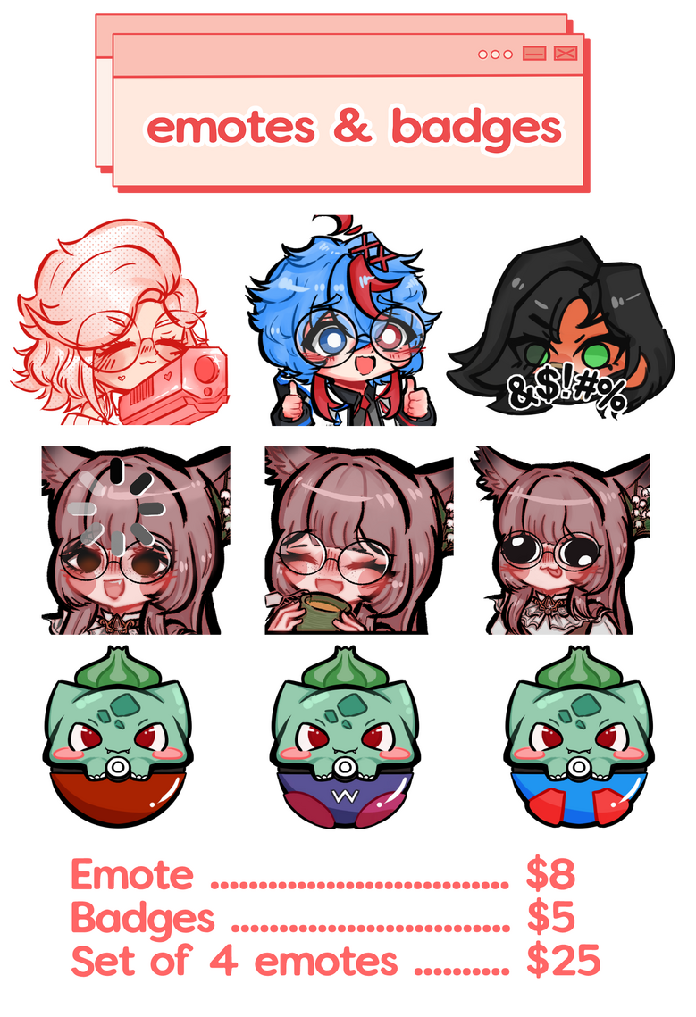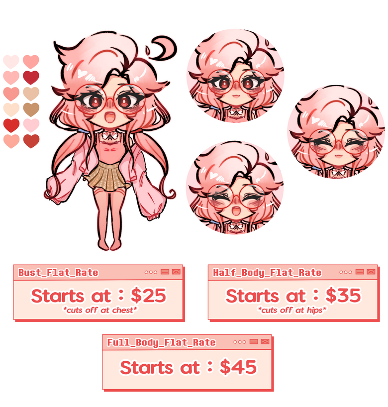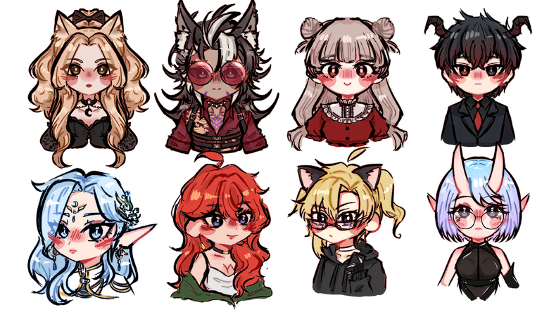 • Read more Here• Additional charges may apply for more complex designs.• $10 per additional expression (ex. sad, angry, disgusted, yandere)